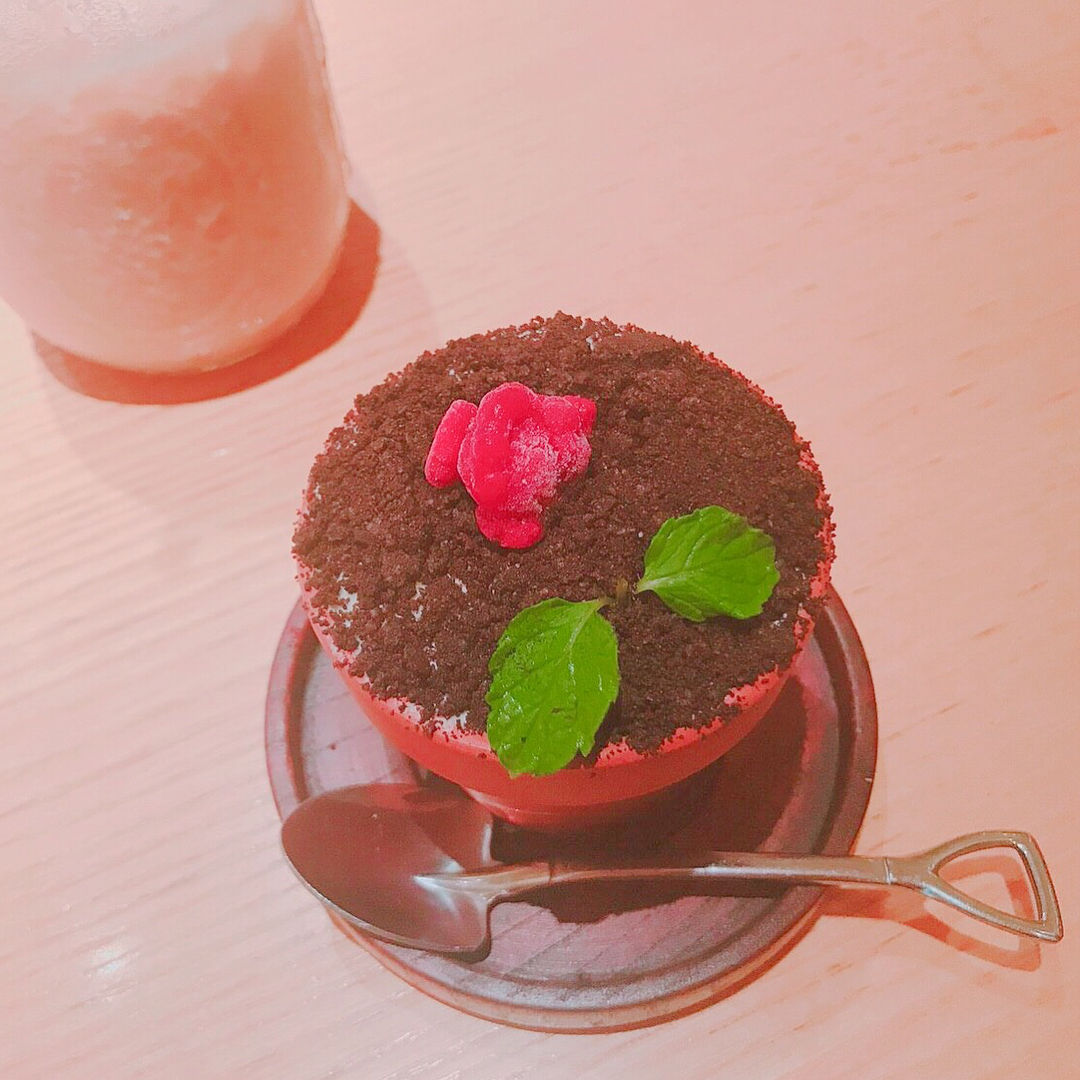 植木鉢っぽく見えるデザートも、中にチーズケーキが入っててどっちも美味しかったよ🍴