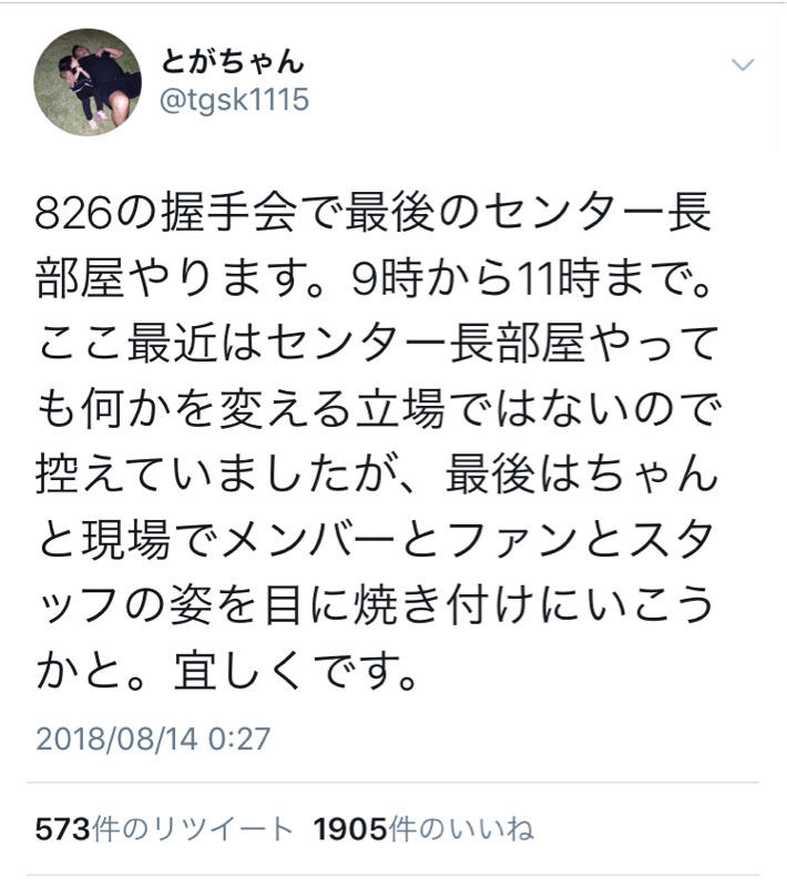 【悲報】tgsk「今度の握手会で最後のセンター長部屋やります!」→「握手会でやる場所もらえませんでした…」【元AKB48劇場支配人 戸賀崎智信】