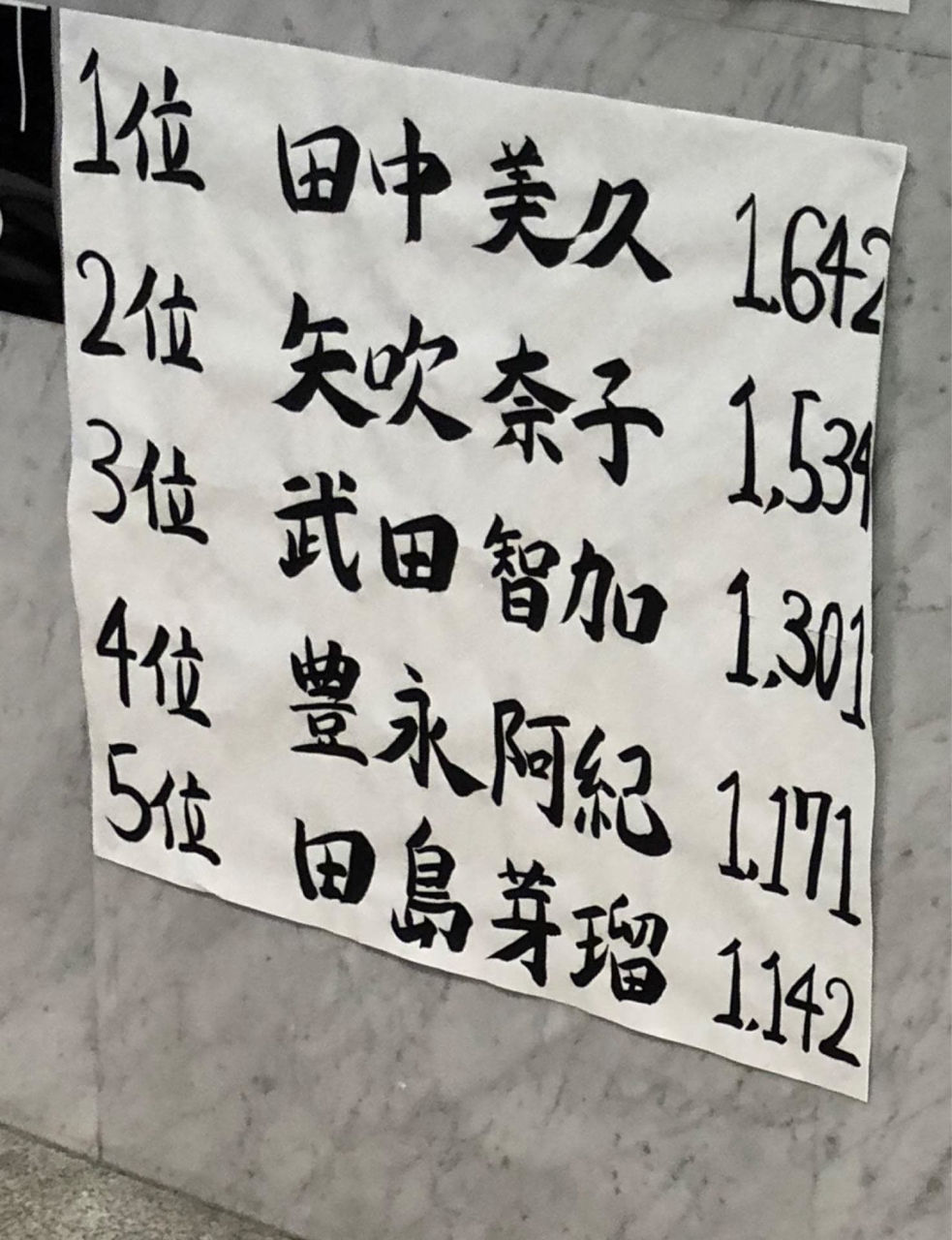 1位 田中美久 1642通