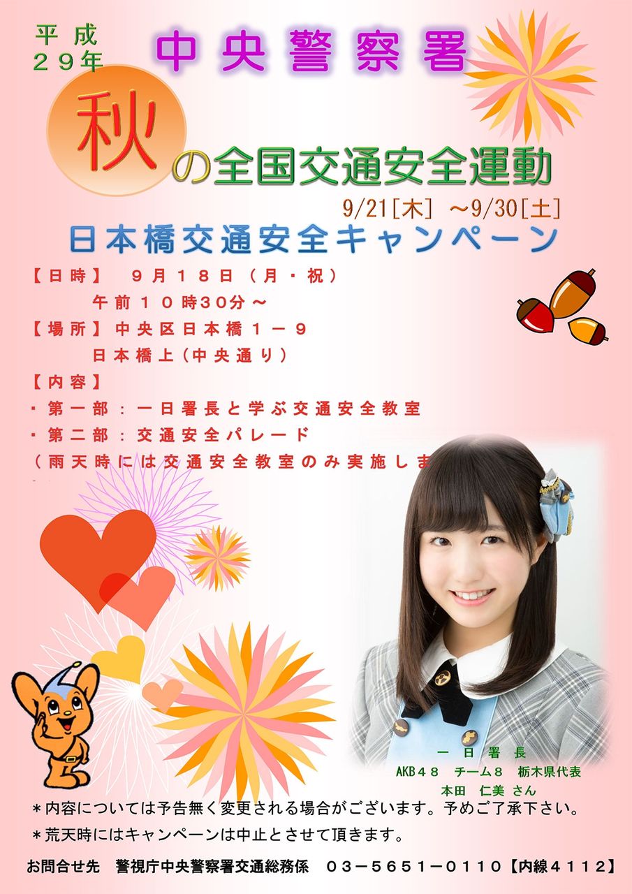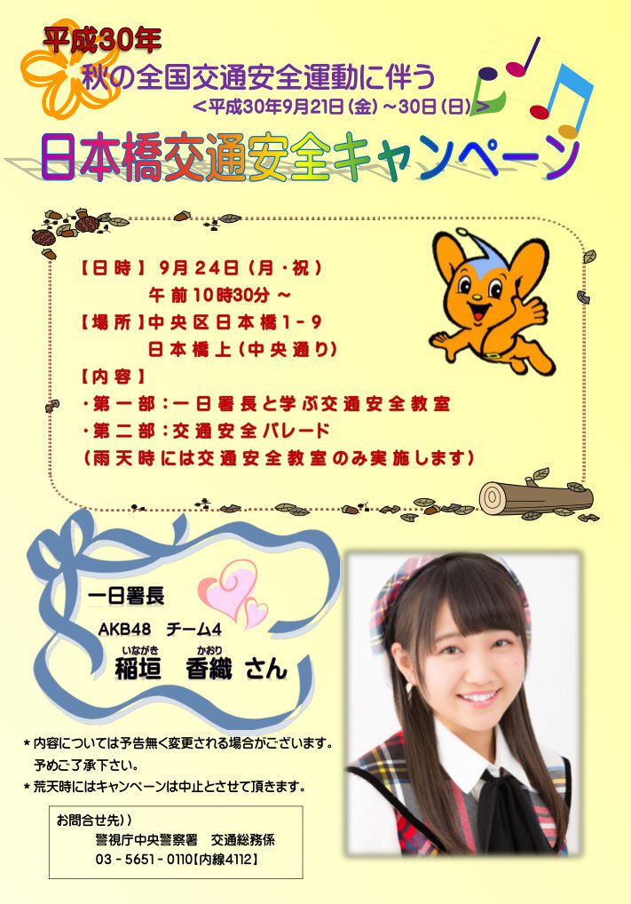 【AKB48】9/24(日)に16期稲垣香織ちゃんの一日署長キタ━━━━(゚∀゚)━━━━!!【日本橋交通安全キャンペーン】