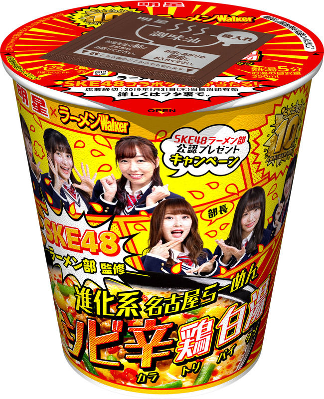 明星食品株式会社(社長:松尾昭英)は、結成10周年を迎えたSKE48とラーメンWalker創刊10周年とのタイアップによる「明星 SKE48ラーメン部監修 進化系名古屋らーめん シビ辛鶏白湯」を、2018年11月12日(月)に全国で新発売します。