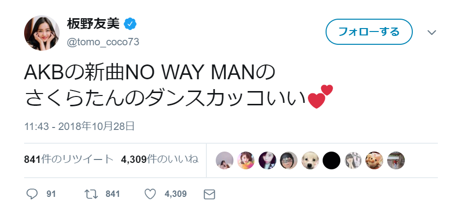 【朗報】板野△が新曲「NO WAY MAN」に反応!!【ともちん】