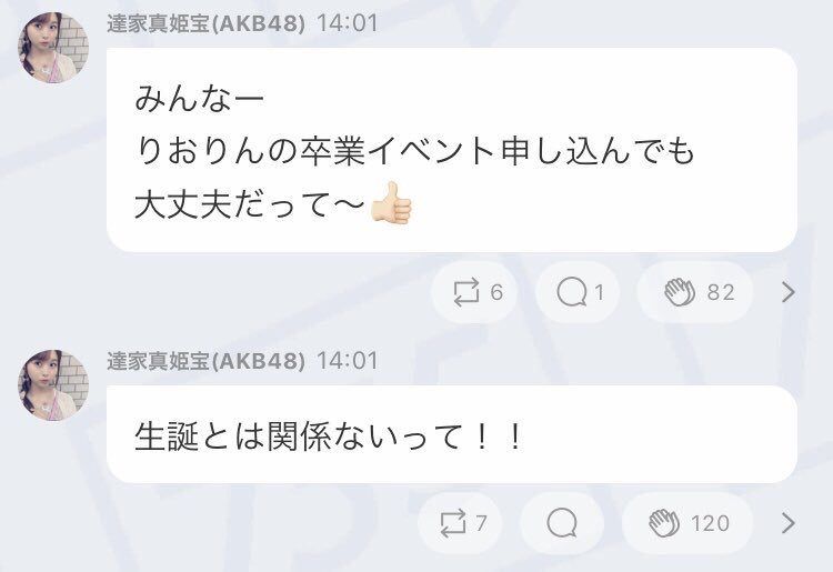 10月30日のりおりん卒業イベントにまきほが出るから生誕直前のヲタが投げるの躊躇してたら画像2枚目のコメント