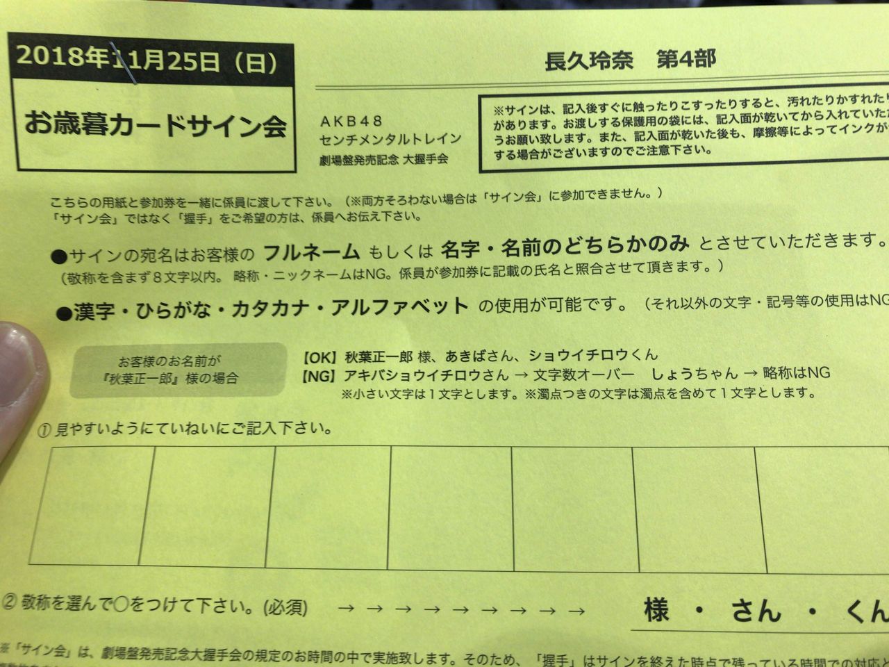開催日当日、それぞれのレーンでメンバーと握手をする前に抽選をして頂きます。