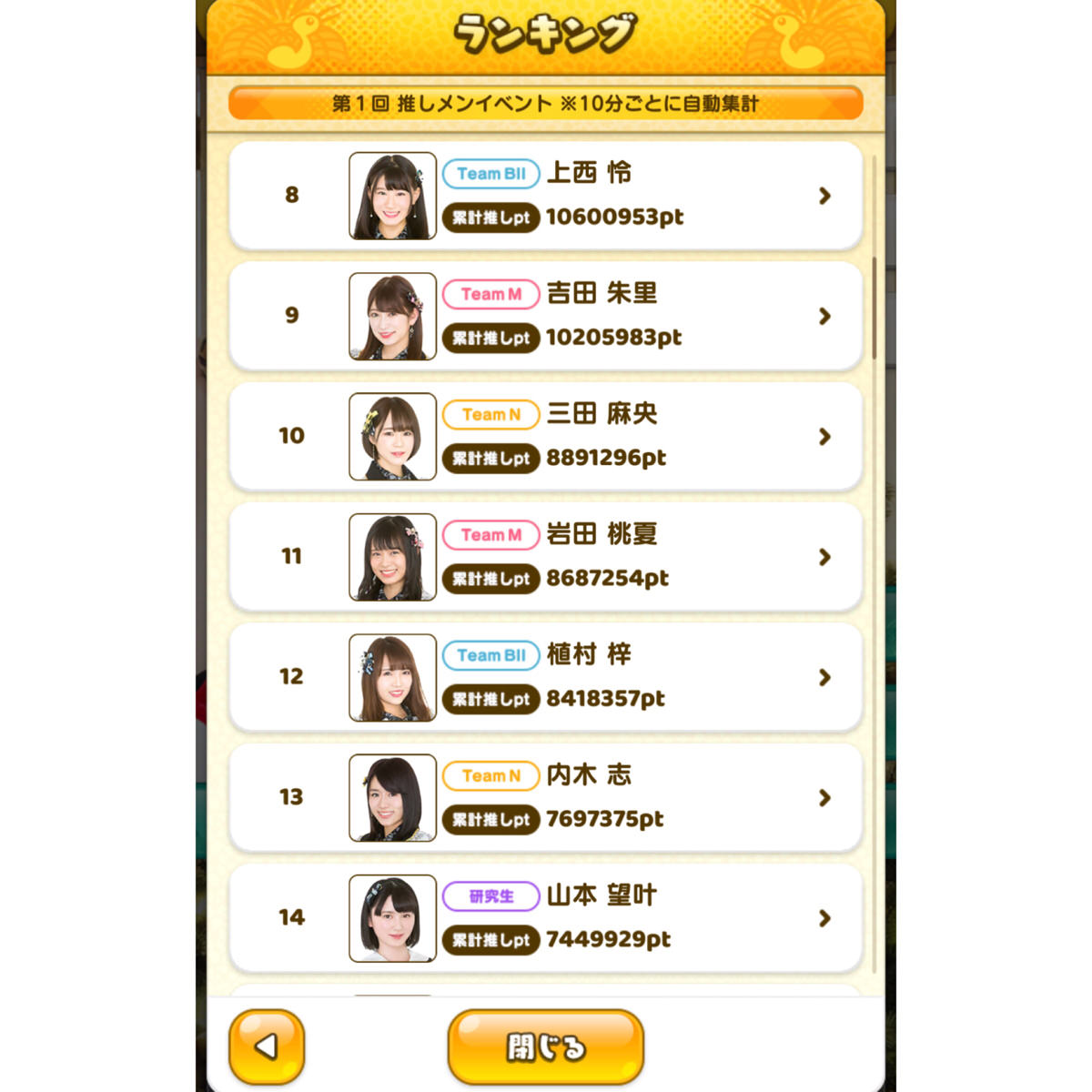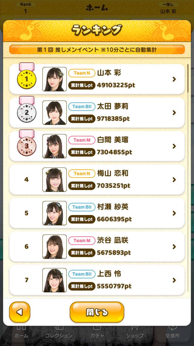 さや姉は推しの多さと全プレのSRカードで更にポイント増えてるんやろな