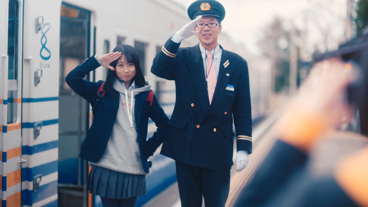 福井駅前の恐竜のモニュメント、路面電車、神社と、街中を撮影して歩く女子高校生との設定だそうです。