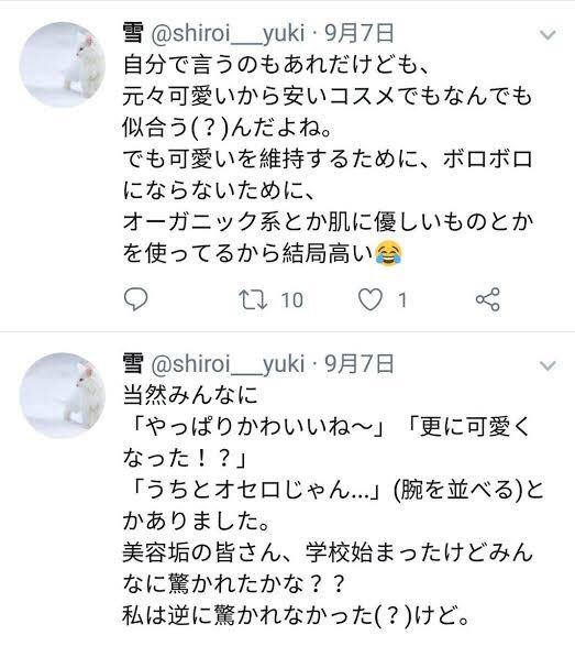・9期の大橋って子が、雪ってアカウントで美容垢をやっていた