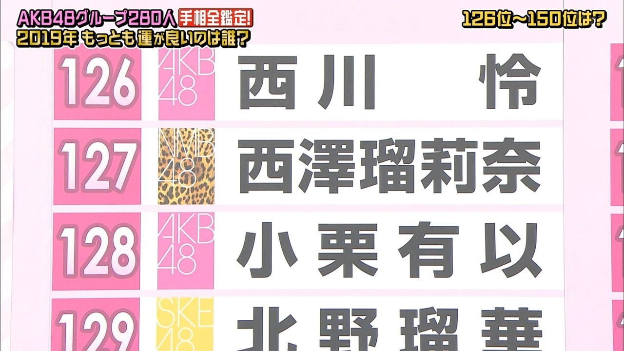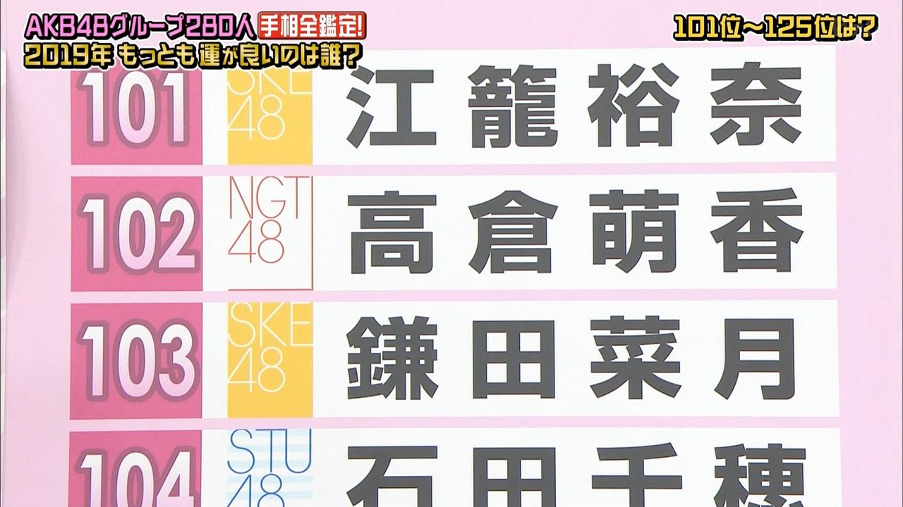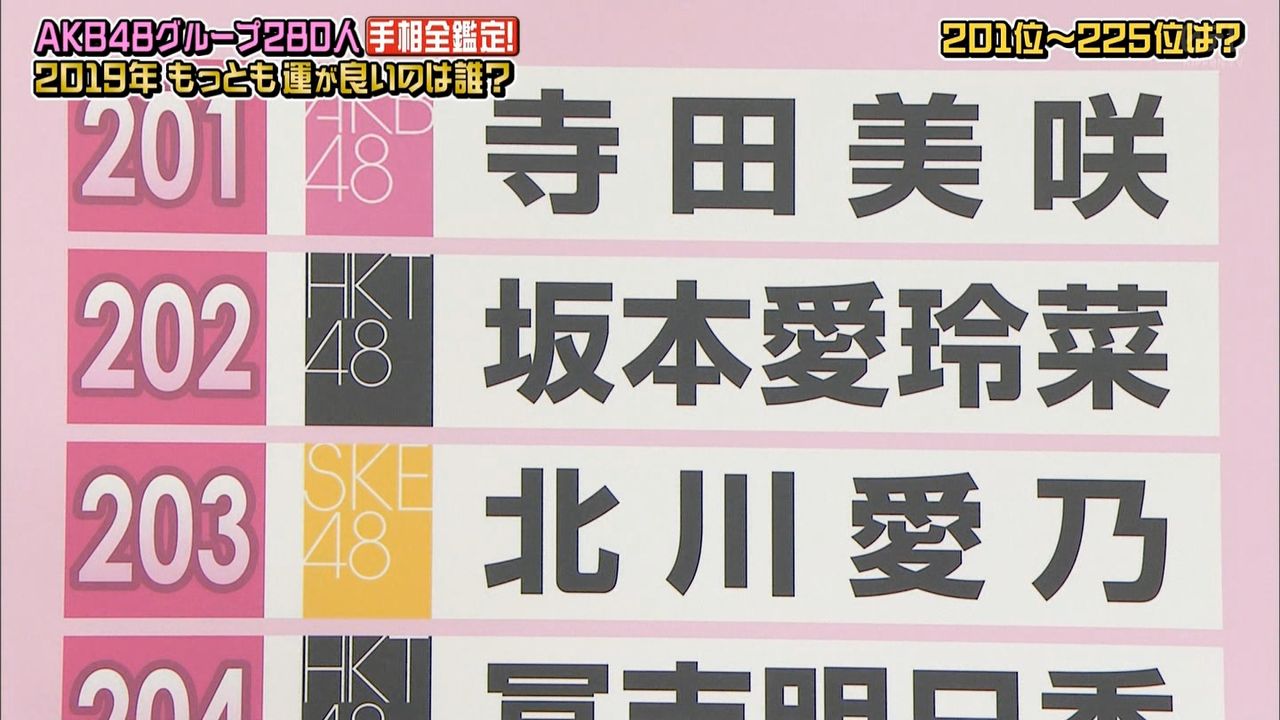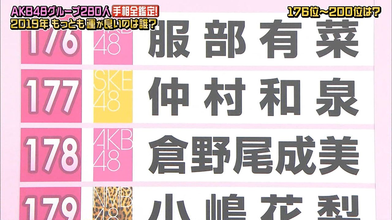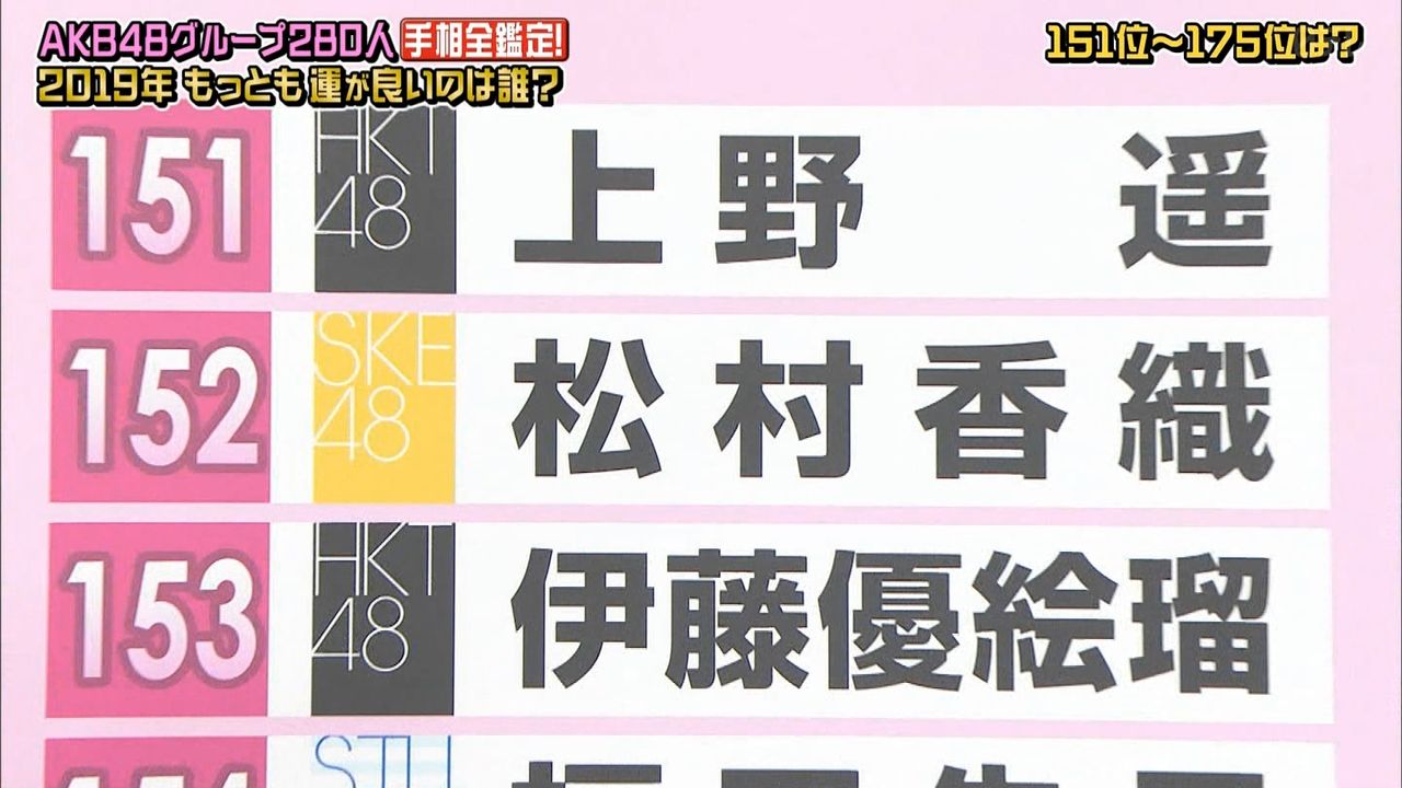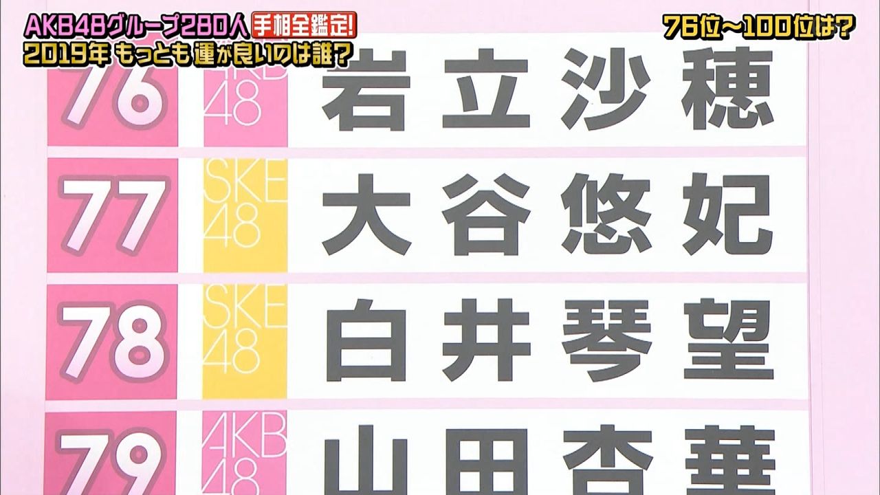 48グループ全280人の手相番付発表!!最強運&最悪運は誰だ!?