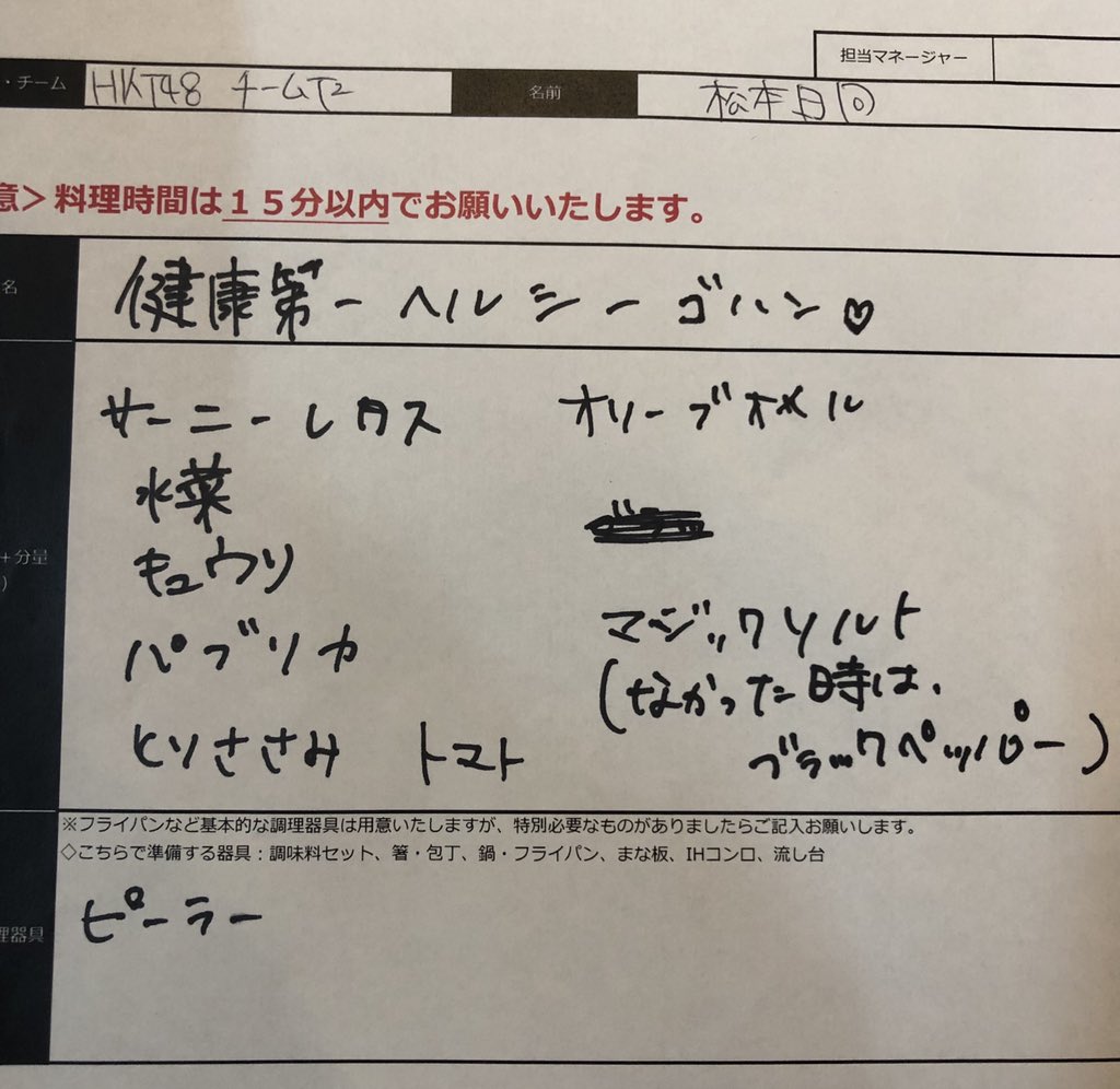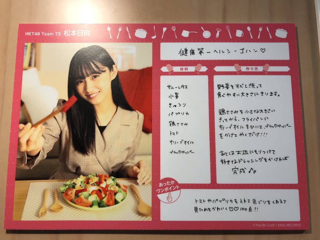 今日握手会で、抽選で当たった方にプレゼントしていたレシピ表です!!
