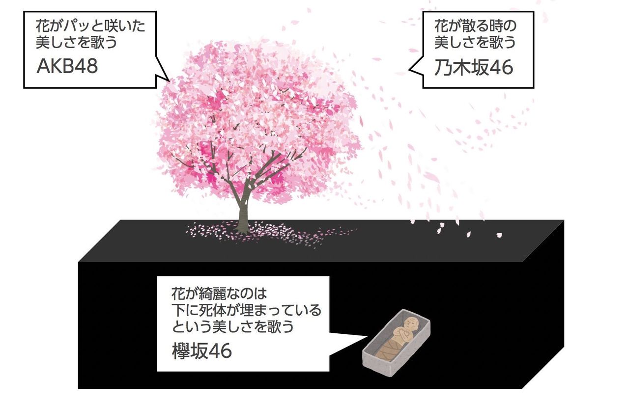 欅坂は「花のない桜を見上げて 満開の日を思ったことがあったか」ってキラーフレーズがあるだろ