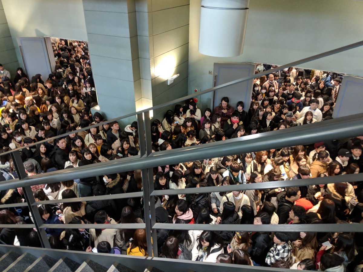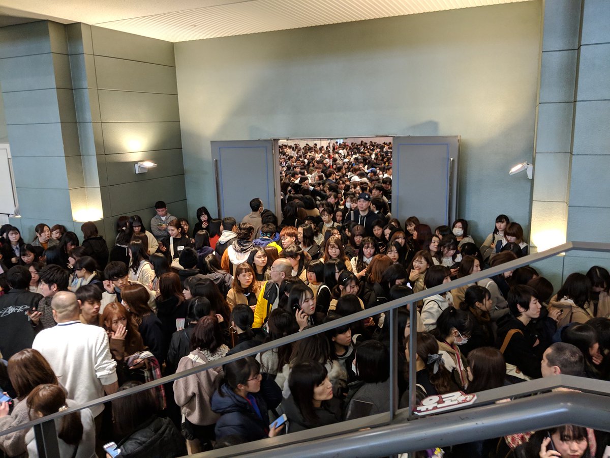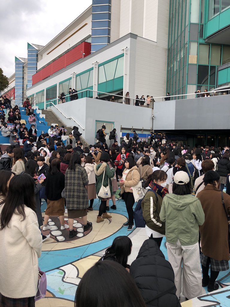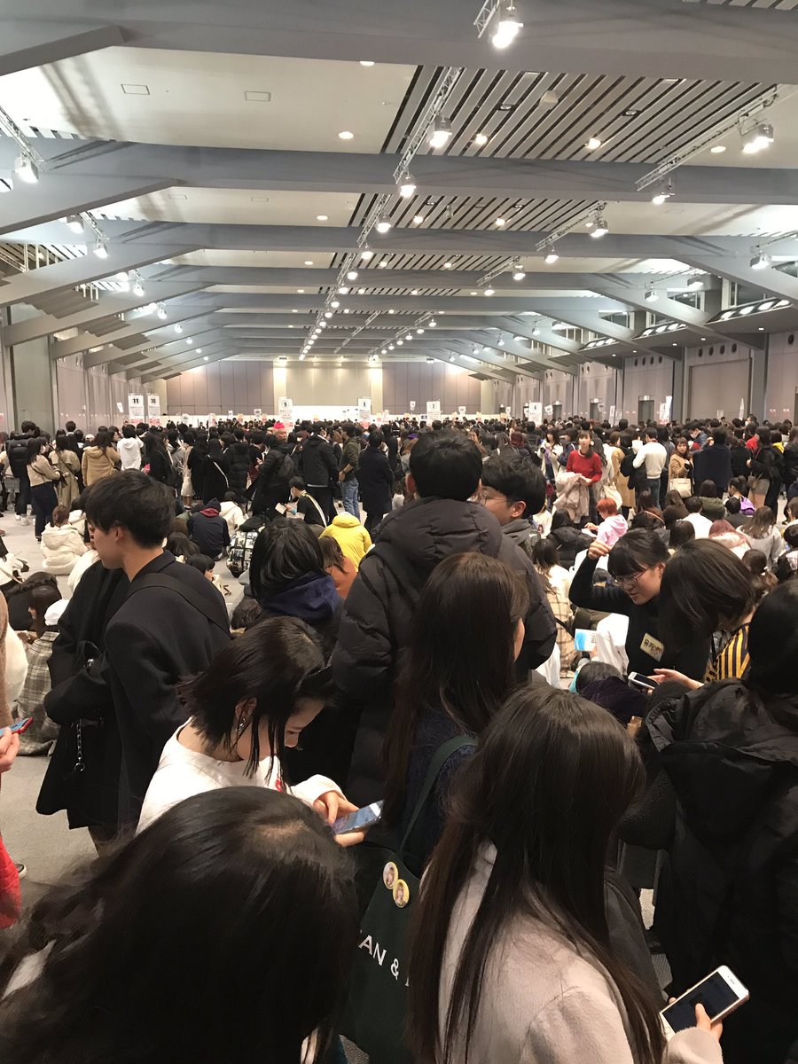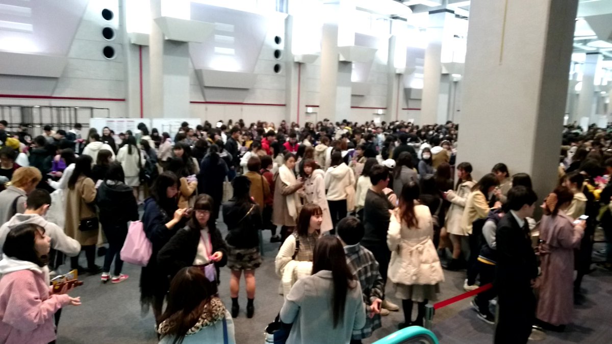 IZ*ONEハイタッチ会の入場待ち。ATCホールの外にとんでもない人の並び。 11時半から2部開始というのにまだまだ列の中間辺りかな。2部内で3人回るのは無理だろうな。最悪一人かも。 男女比率は女子5:男子1位かな。若い女性メインで男性は若い人も多く、オジさん比率低し。 #IZONEハイタッチ会 #izone