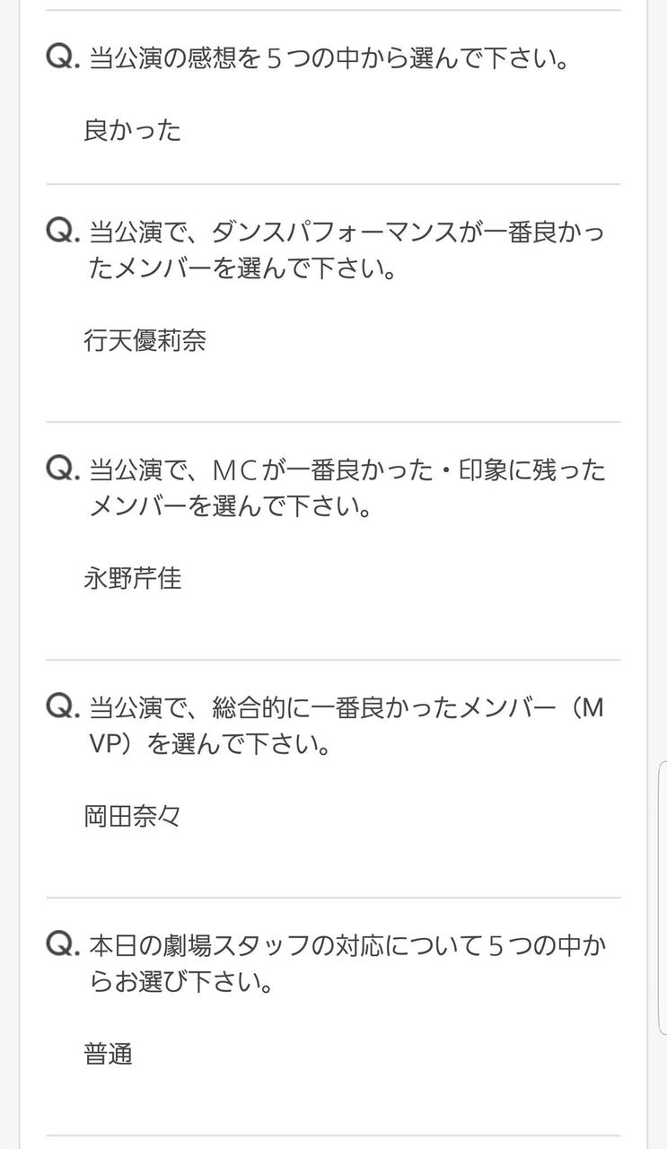 月曜日の秋葉原劇場の公演のアンケート来てないよな