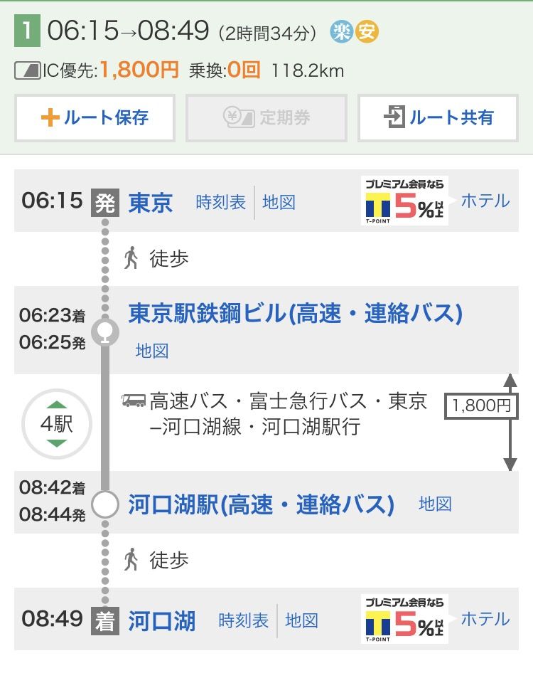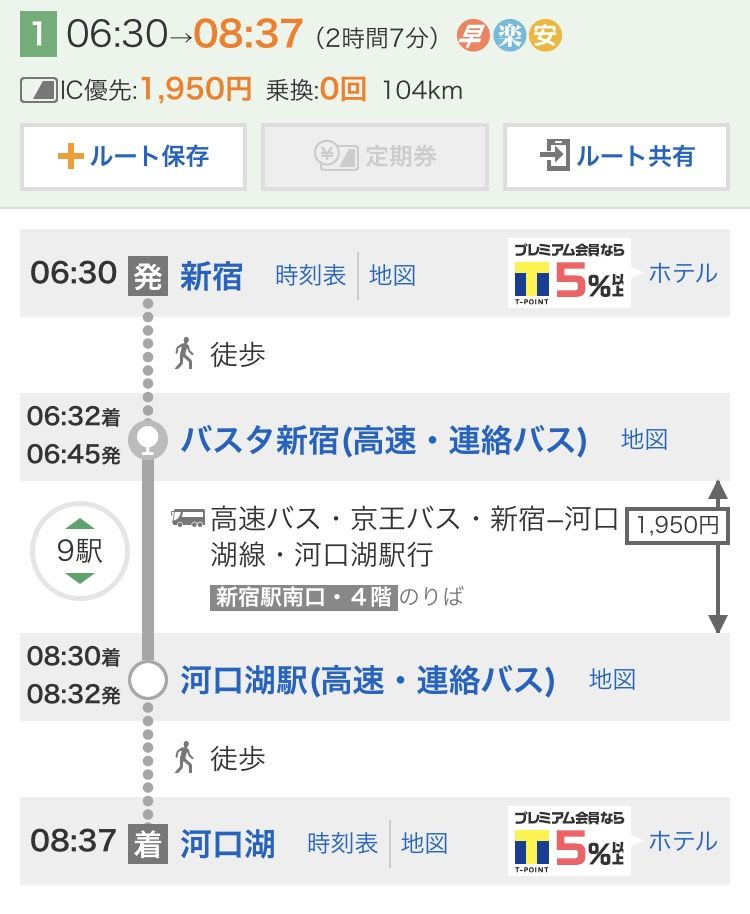 東京(新宿) → 河口湖