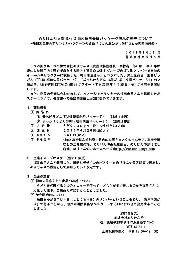 「めりけんや☓STU48」STU48 福田朱里パッケージ商品の発売について