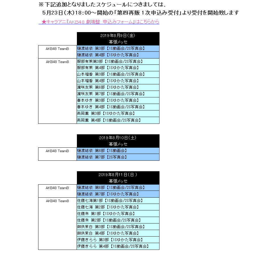 8の山本瑠香ちゃんが755で8月に日程追加されたとか言ってたのはこれか
