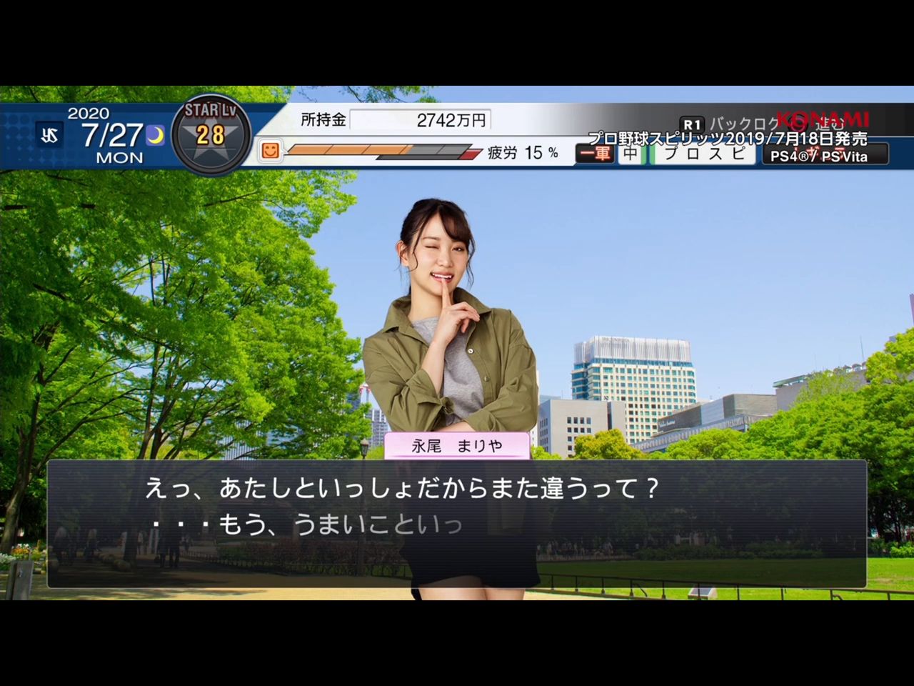 7月18日発売PS4/PSVita『プロ野球スピリッツ2019』の「スタープレイヤー」モードに彼女役として出演致します😉✨