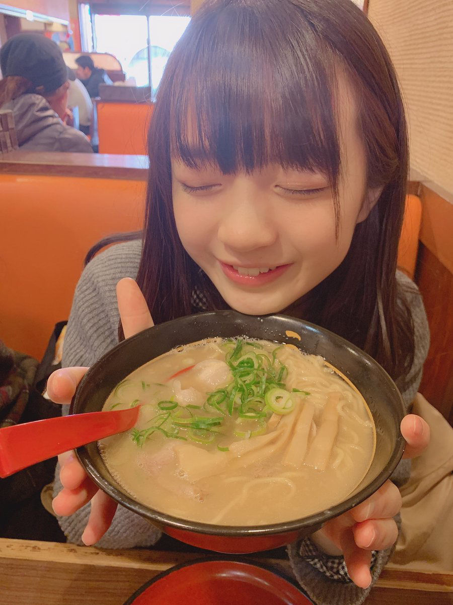 かわいい女の子が嬉しそうにラーメン食べてる