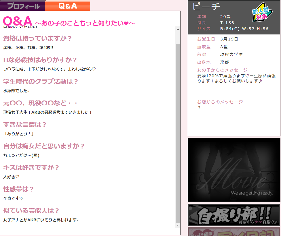 風俗嬢のプロフィールに事実なんて一つもないぞ。