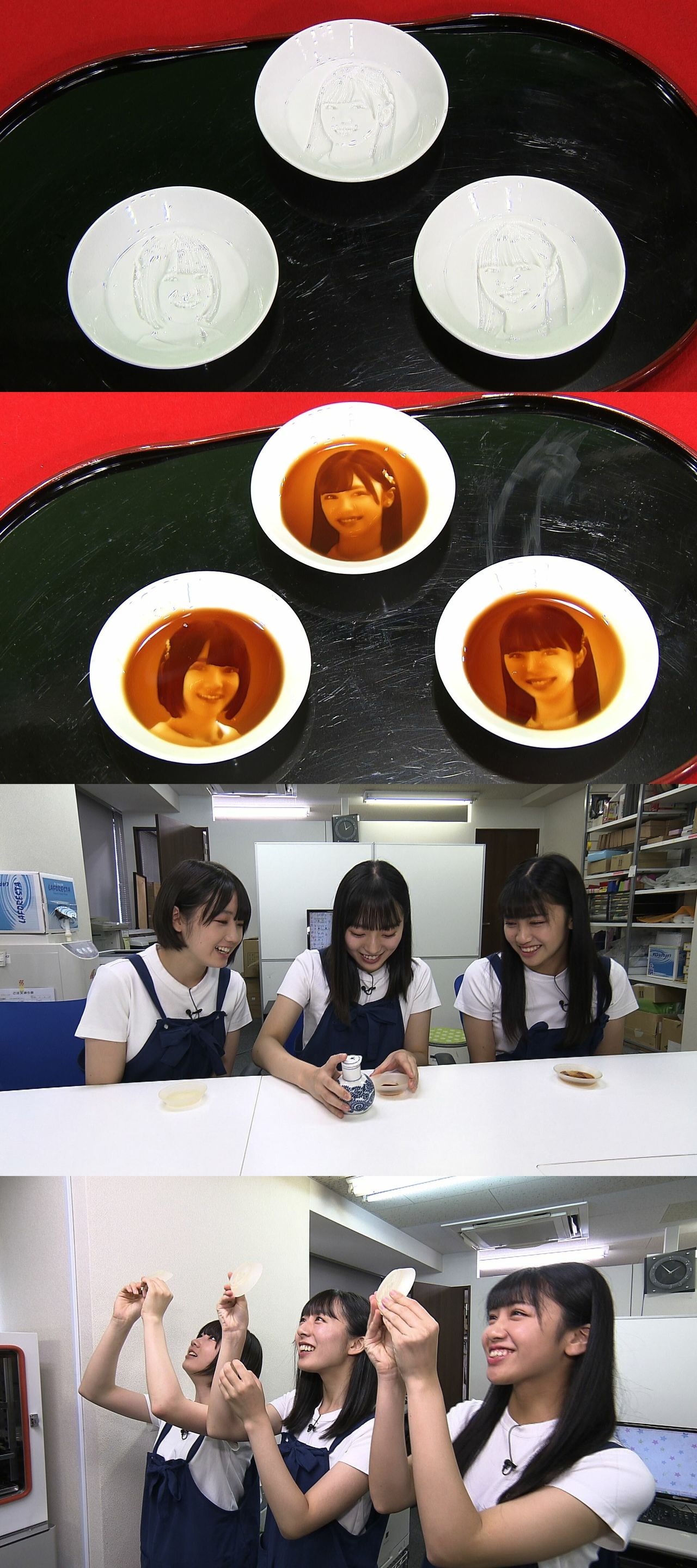 醤油を入れると、写真のようにリアルなメンバーの顔が浮かび上がる、不思議な醤油皿。