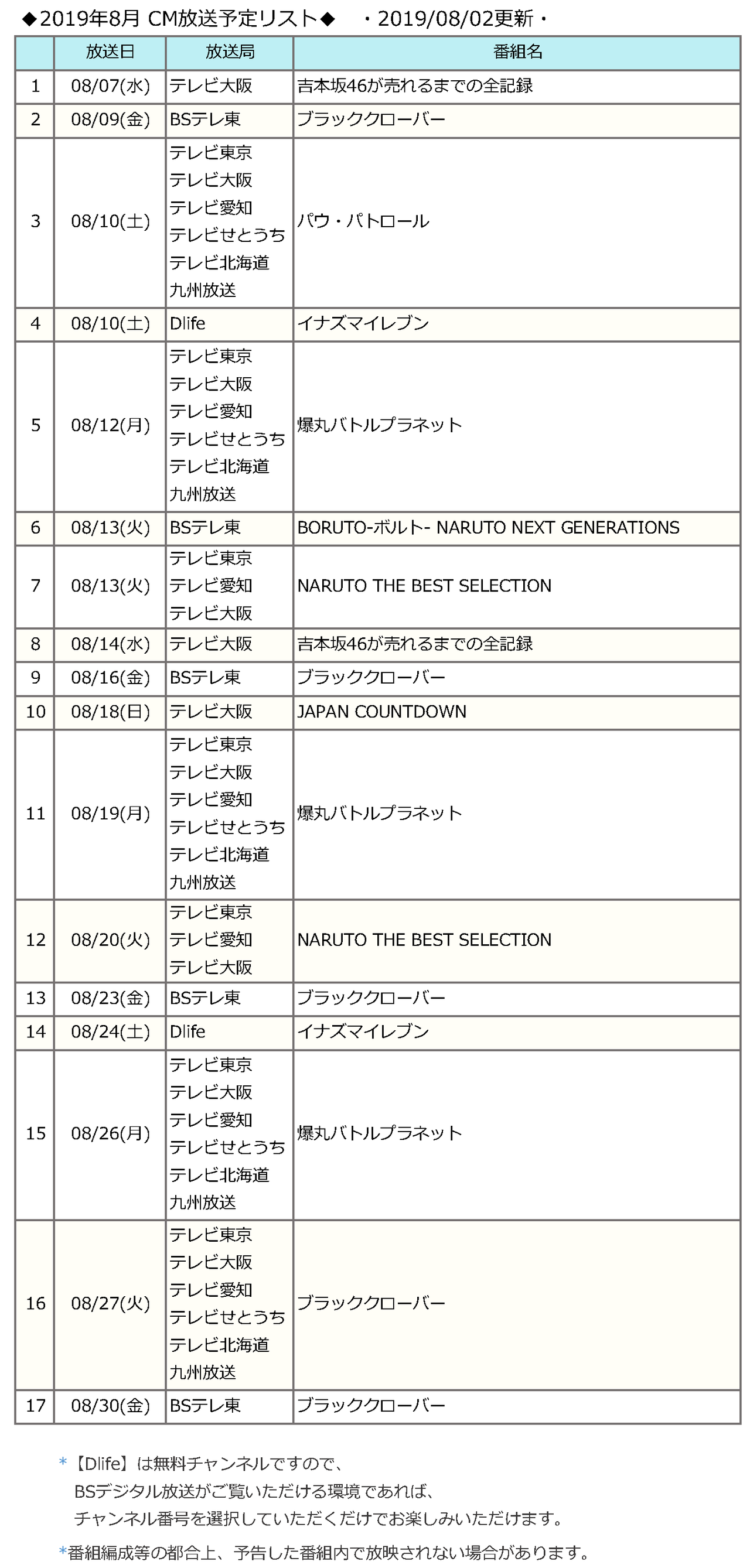 放送予定リストが公開されているのか。すごいな。