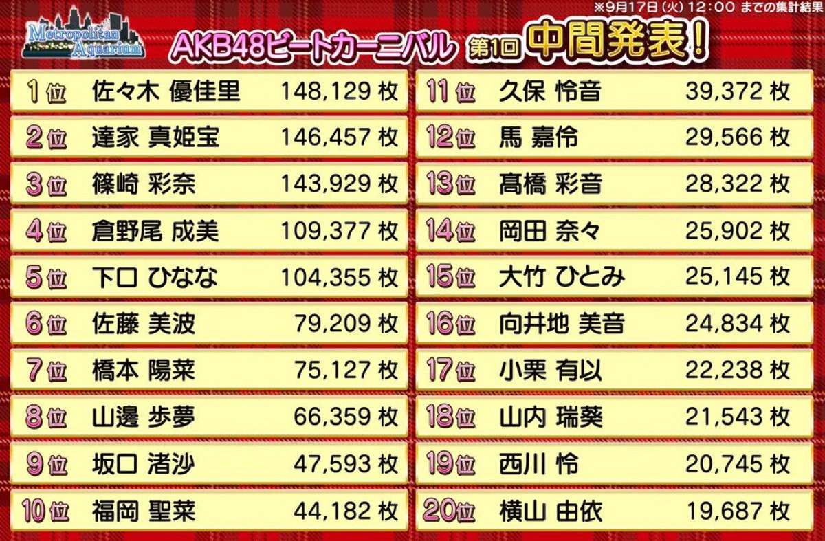 【速報】 AKB48ビートカーニバル「テレビ番組出演メンバー決定戦」第1回中間発表キター!