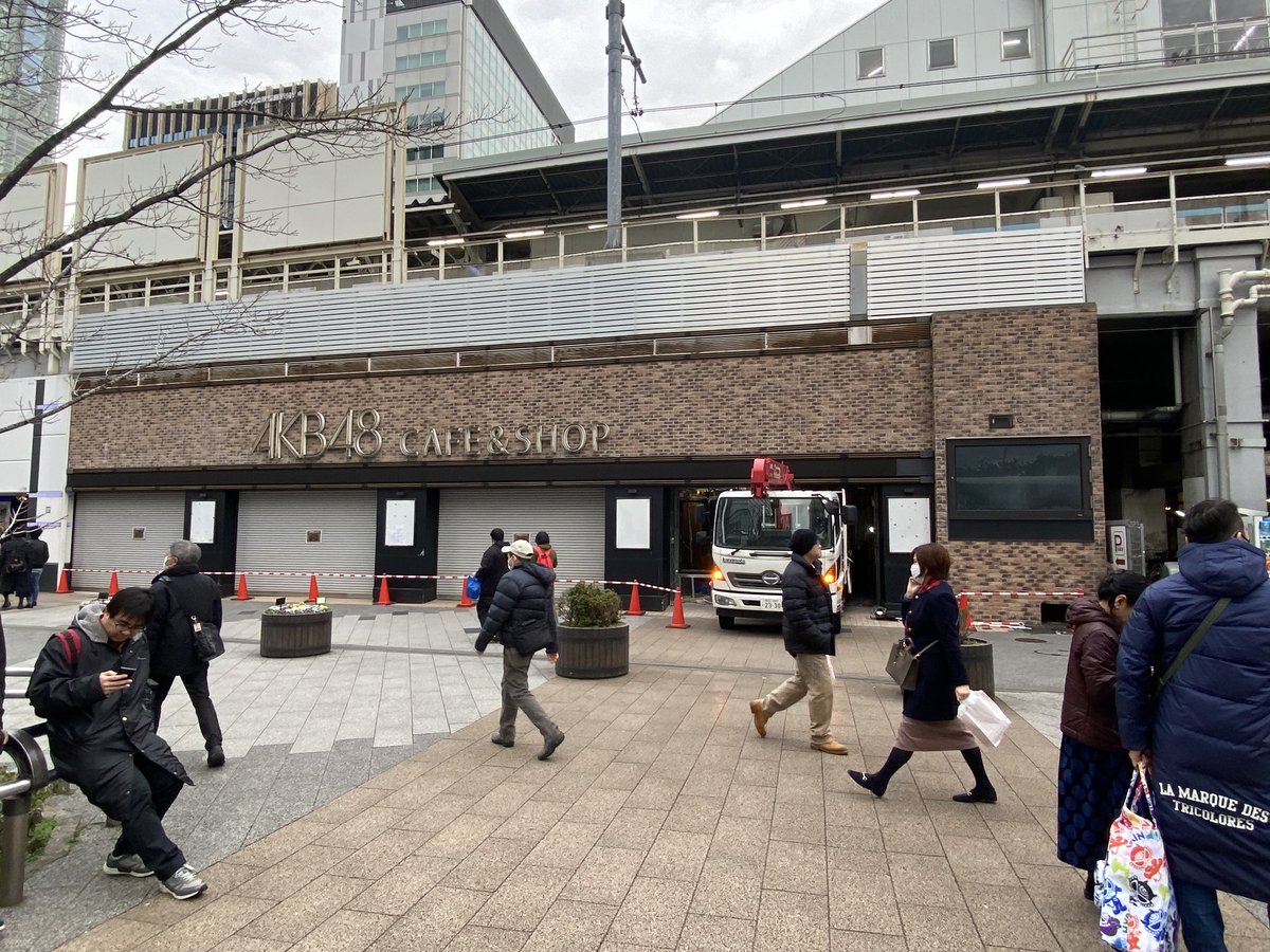 AKBカフェ閉店 → 駅再開発の為とうそぶきヲタも別場所でリニューアルを願うも周りの店は閉店の予定もなくJRも再開発の場所が違うと回答 → 他は健在な中あっさりと閉店