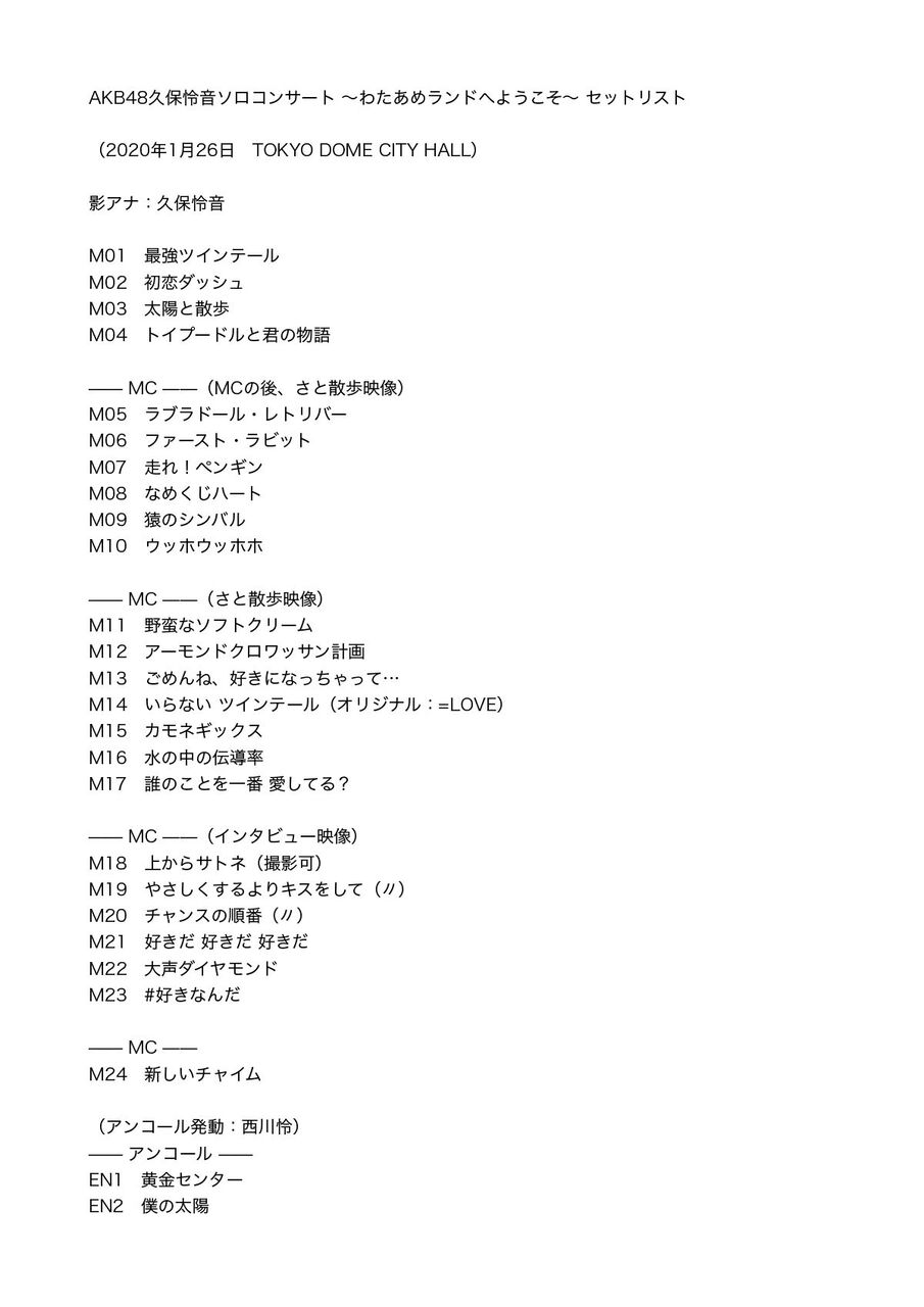 いかにもまゆゆ&NMBヲタって感じのセトリ