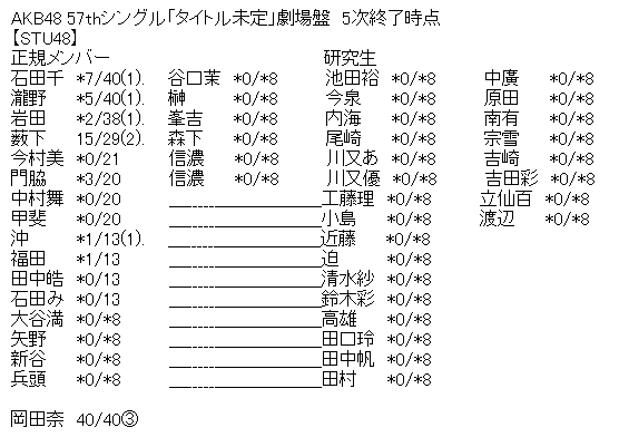 【AKB48】57thシングル「タイトル未定」劇場盤 5次完売状況まとめ
