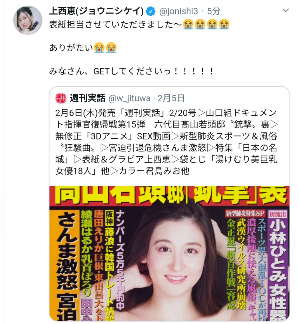 【画像】上西恵が表紙で女性器丸見えw