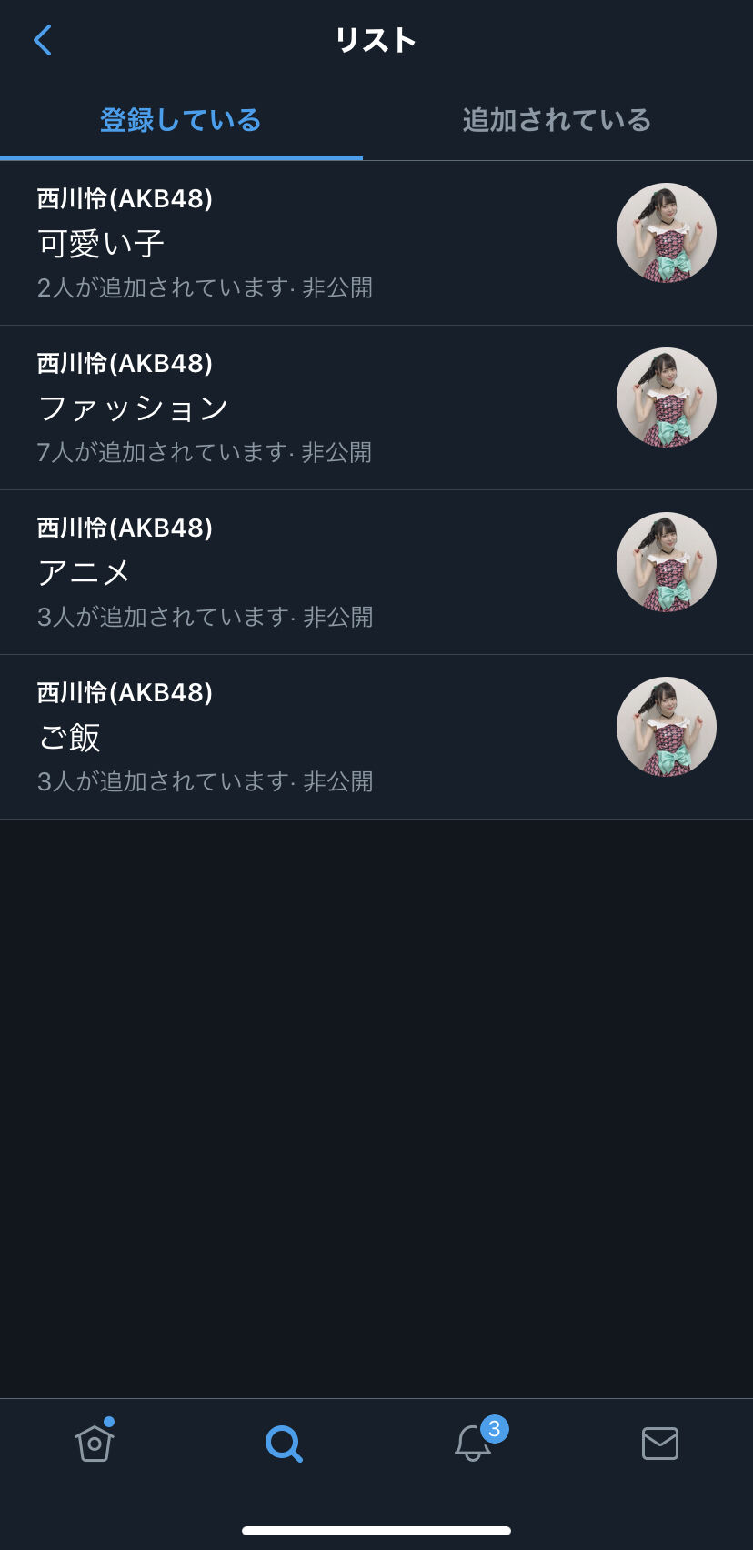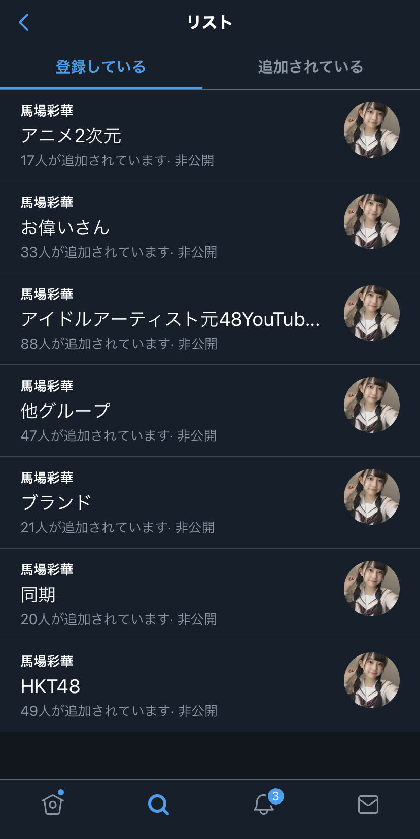 プロフィール→リスト表示でリスト名とメンバー数がわかってしまう