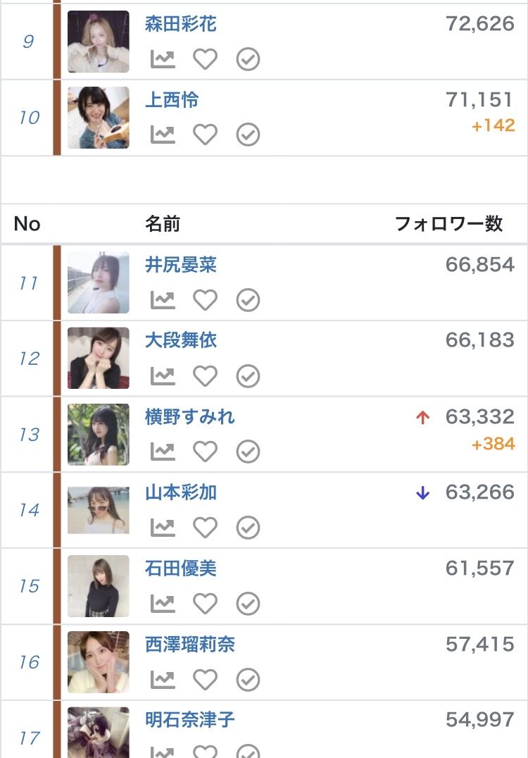 梅山はとっくに抜かれてるが、ヲタが盛り上がる割に勢いないな、これからか?