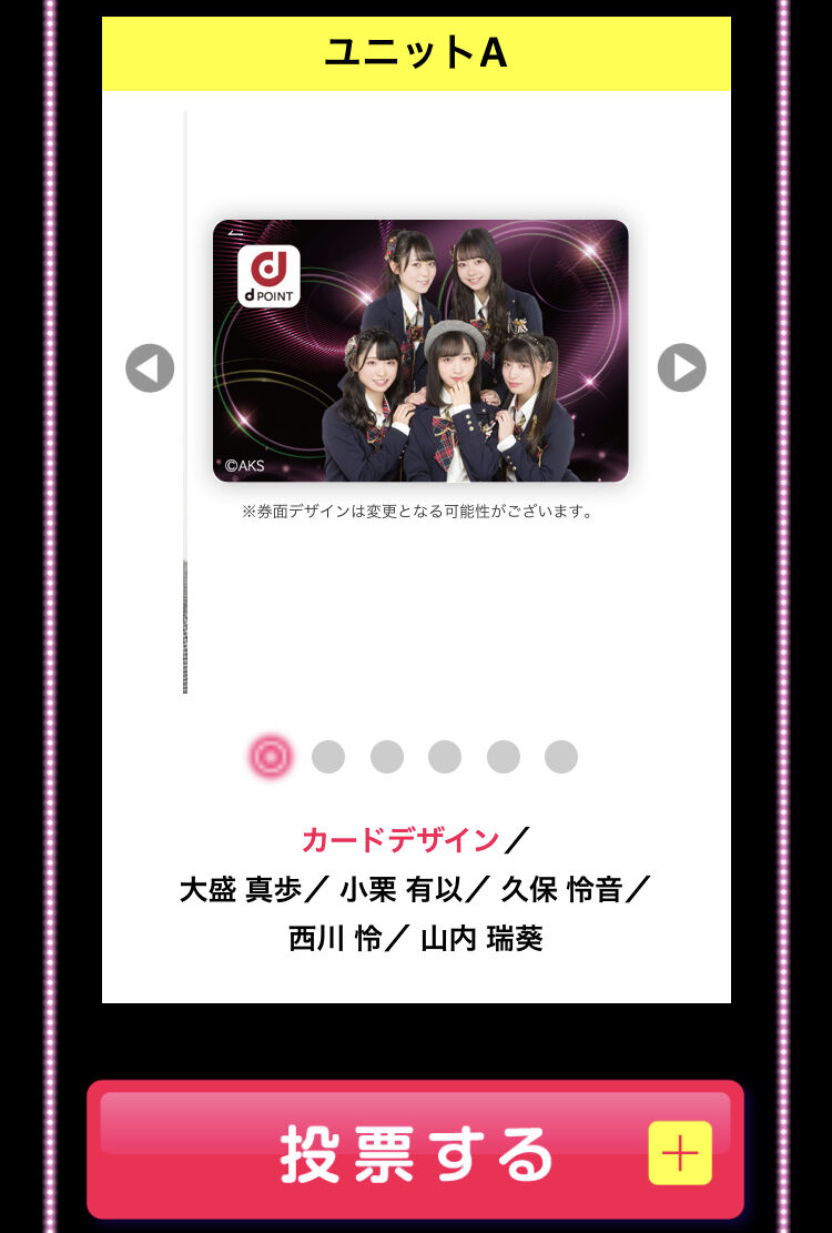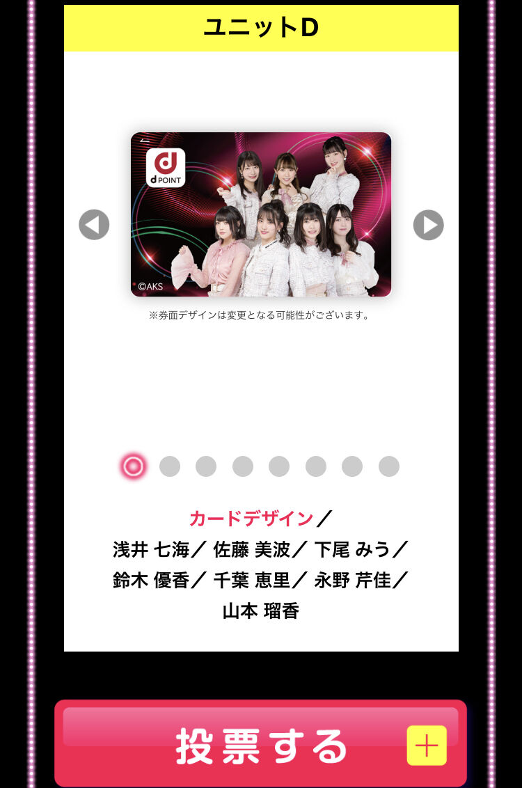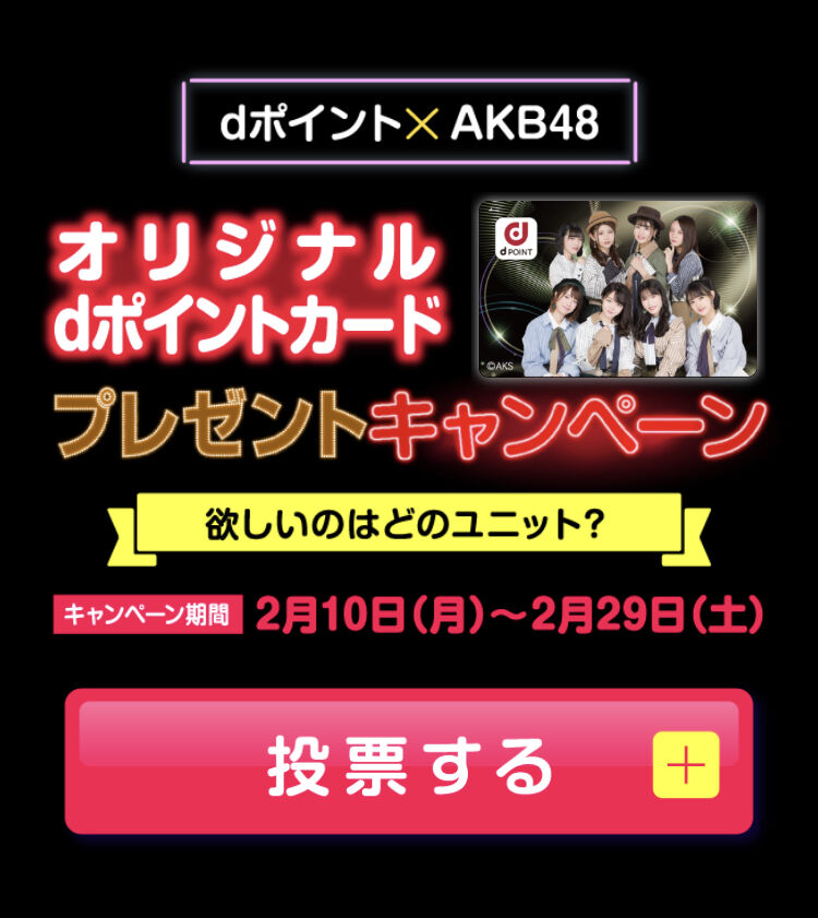 AKB48の新ユニット8組の中で投票数が一番多かったユニットデザインのオリジナルdポイントカードを、抽選で10,000名さまにプレゼント♪