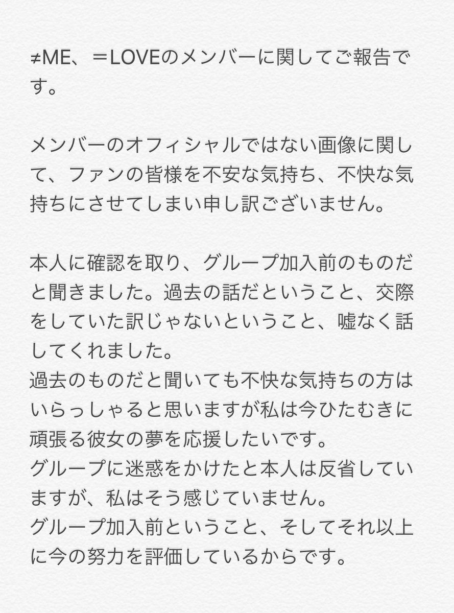 今の私を応援していただけるように、≠MEにとって必要な存在になれるように、いままで以上に頑張ります。これからもよろしくお願い致します。