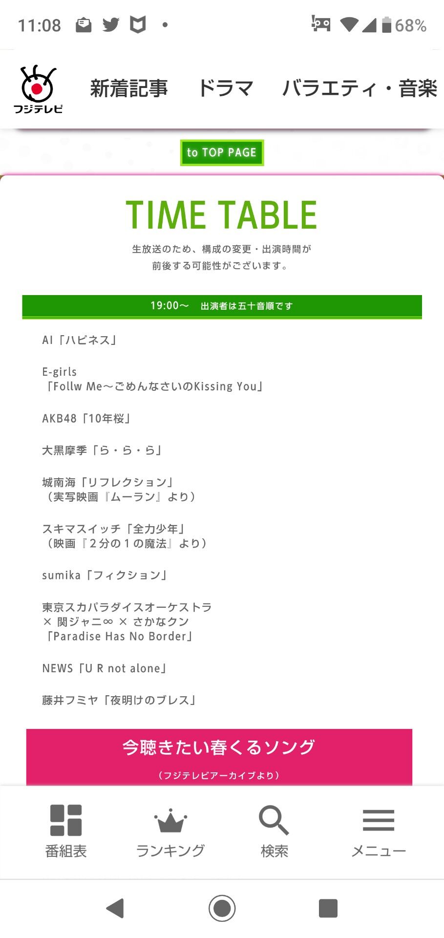今後の音楽番組 TV出演