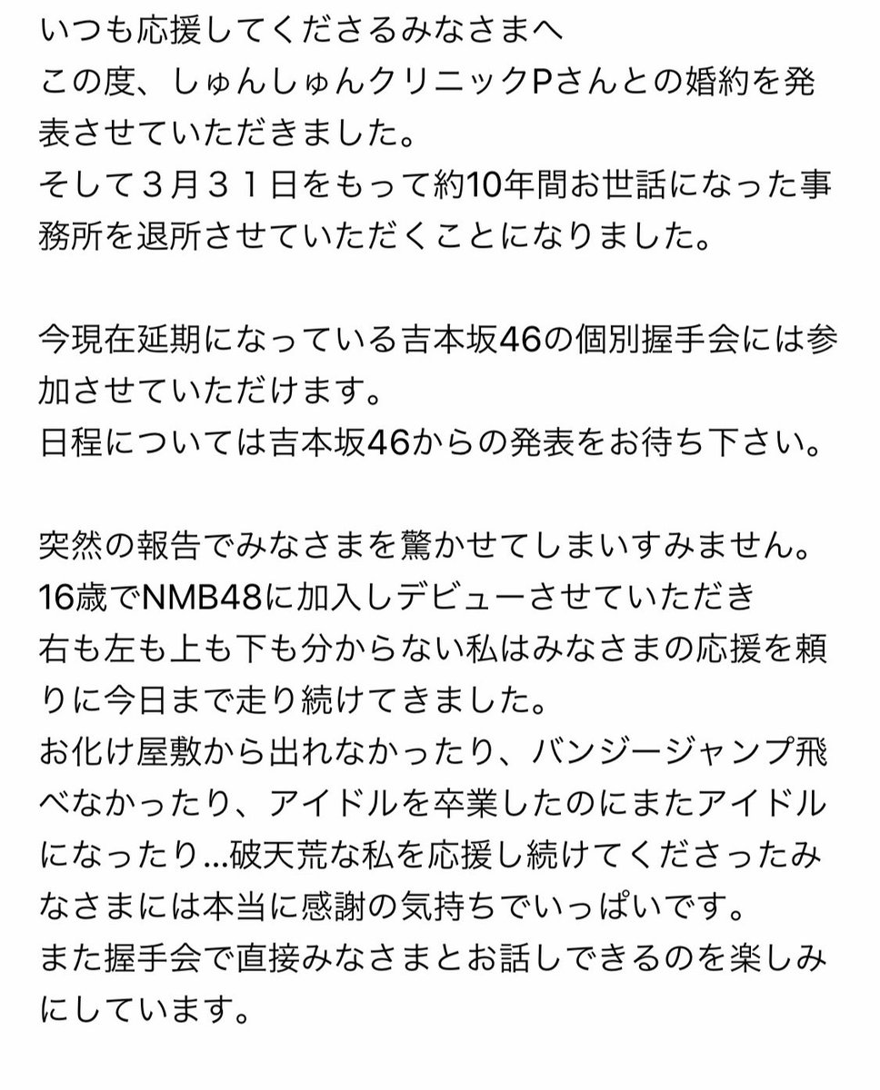 吉本坂46内結婚か