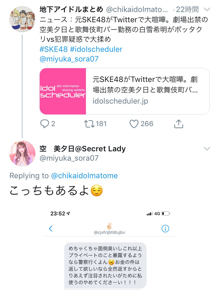 【元SKE48】空美夕日、白雪希明のツイッターバトルで更に煽るwwwww