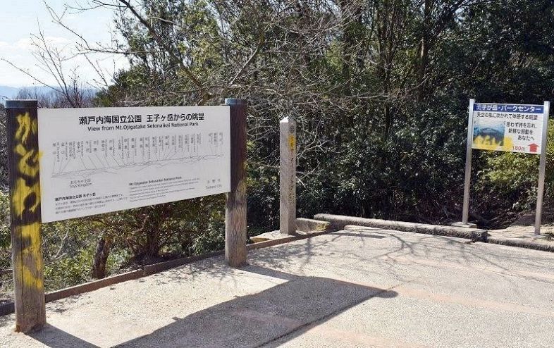 玉野市と倉敷市にまたがる景勝地「王子が岳」(234メートル)の山頂付近の駐車場で、設置されている観光案内板や記念碑の4カ所に落書きされている。