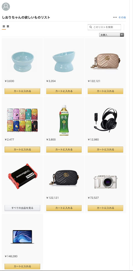 しおりちゃんの欲しいものリスト(原文ママ)