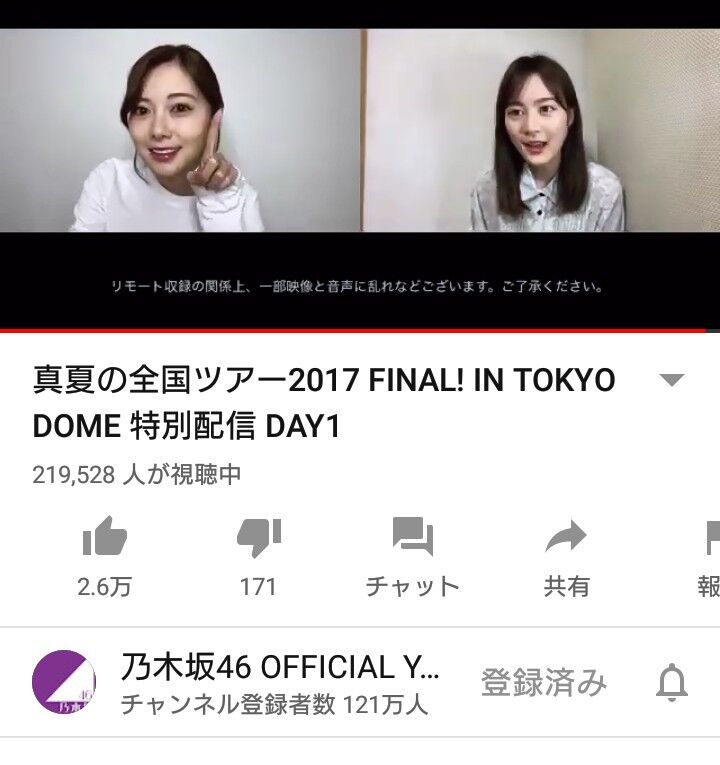YouTubeの乃木坂46の東京ドーム配信、5分で同接20万超えwww