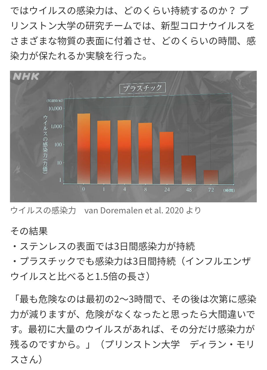 付着後のコロナの感染力の実験したら3日も持続してる、とかやってたで