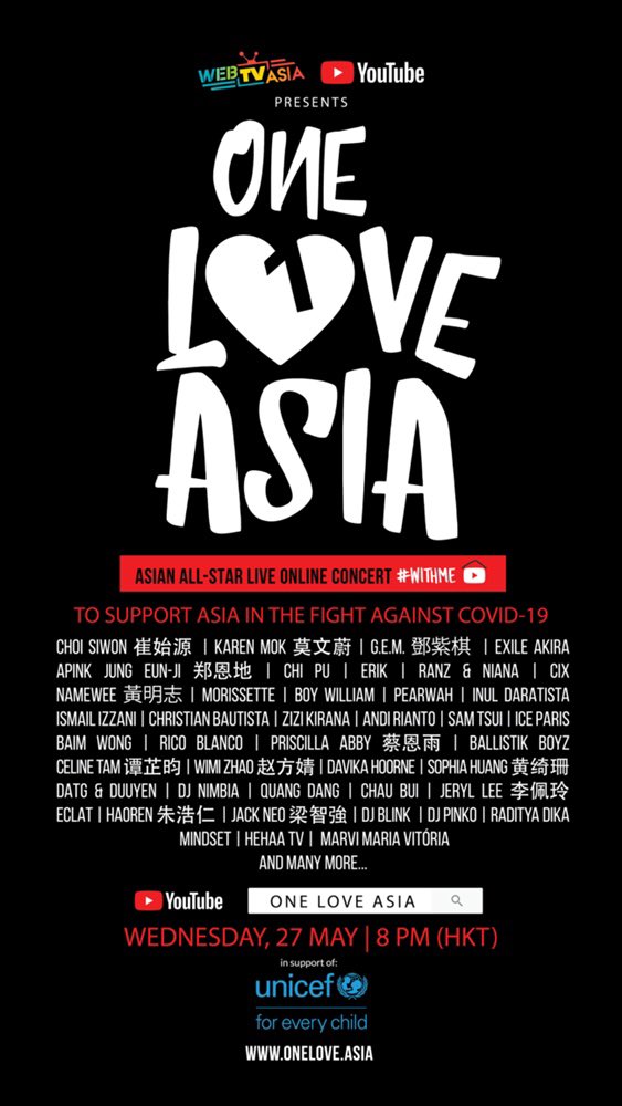 「One Love Asia」コンサートは、貧困や自然災害、搾取と差別、新型コロナウイルスによって人権を侵害されているアジアの子どもたちを支援するために企画され、コンサートで集まった基金はユニセフのアジア地域の新型コロナウイルスへの対応と、恵まれない子どもたちのための保健事業に全額使われる予定だ。