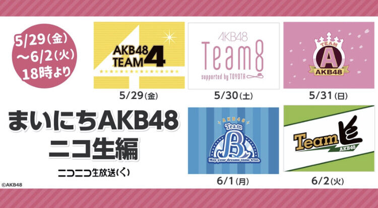 生放送ではチーム対抗企画や、2019年1月12日~14日にかけTOKYO DOME CITY HALLにて開催されたAKB48チームコンサートのダイジェスト版の同時視聴、リモート出演しているメンバーが家からライブをお届けする企画、リモート生誕祭などを行います。