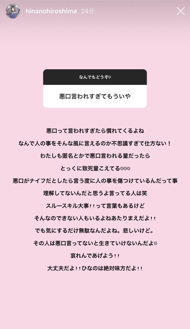 俺たちの陽菜ちゃん「匿名とかで悪口言われる量だったらとっくに致死量超えてる」