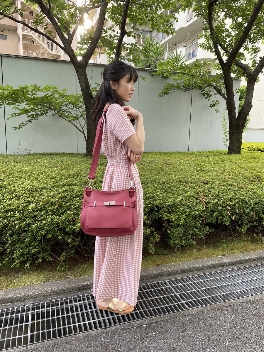 10日に自身のインスタグラムで、ピンク色のギンガムチェックのワンピース姿を披露していた横山。