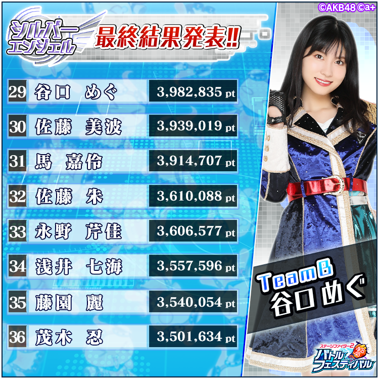 ・選抜イベント結果発表時ランクインしたメンバーであっても、スケジュール等の都合により不参加とさせていただく場合がございます。