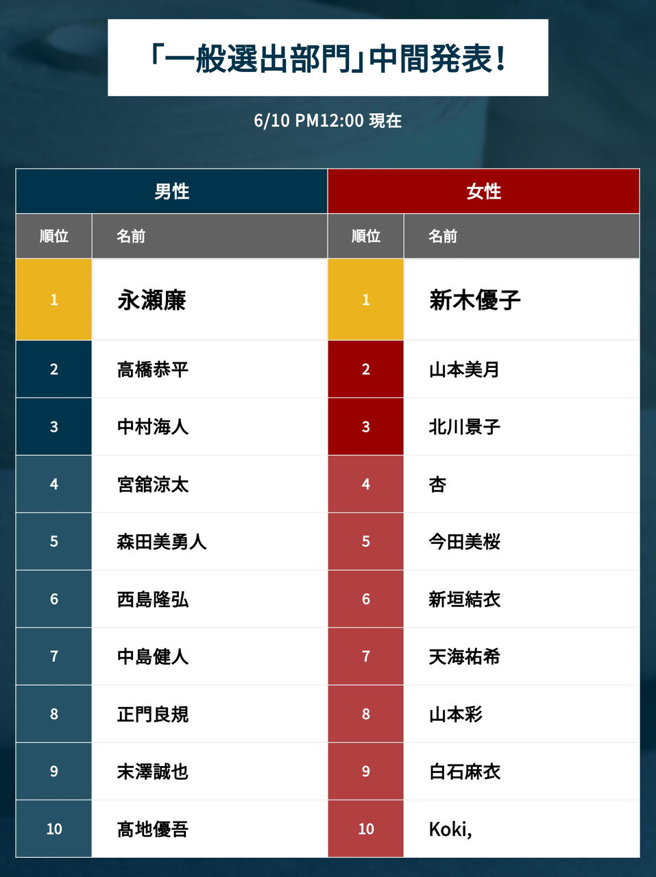 男の方、知らない名前だらけw