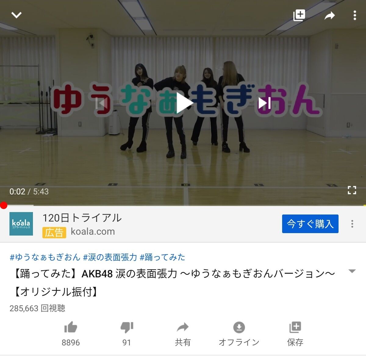 【YouTube】峯岸みなみ 「【踊ってみた】AKB48 『Beginner』」3日で105万回再生!!