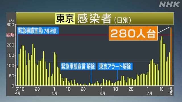 【速報】東京都、280人がコロナ感染・・・年内握手と公演は絶望か・・・