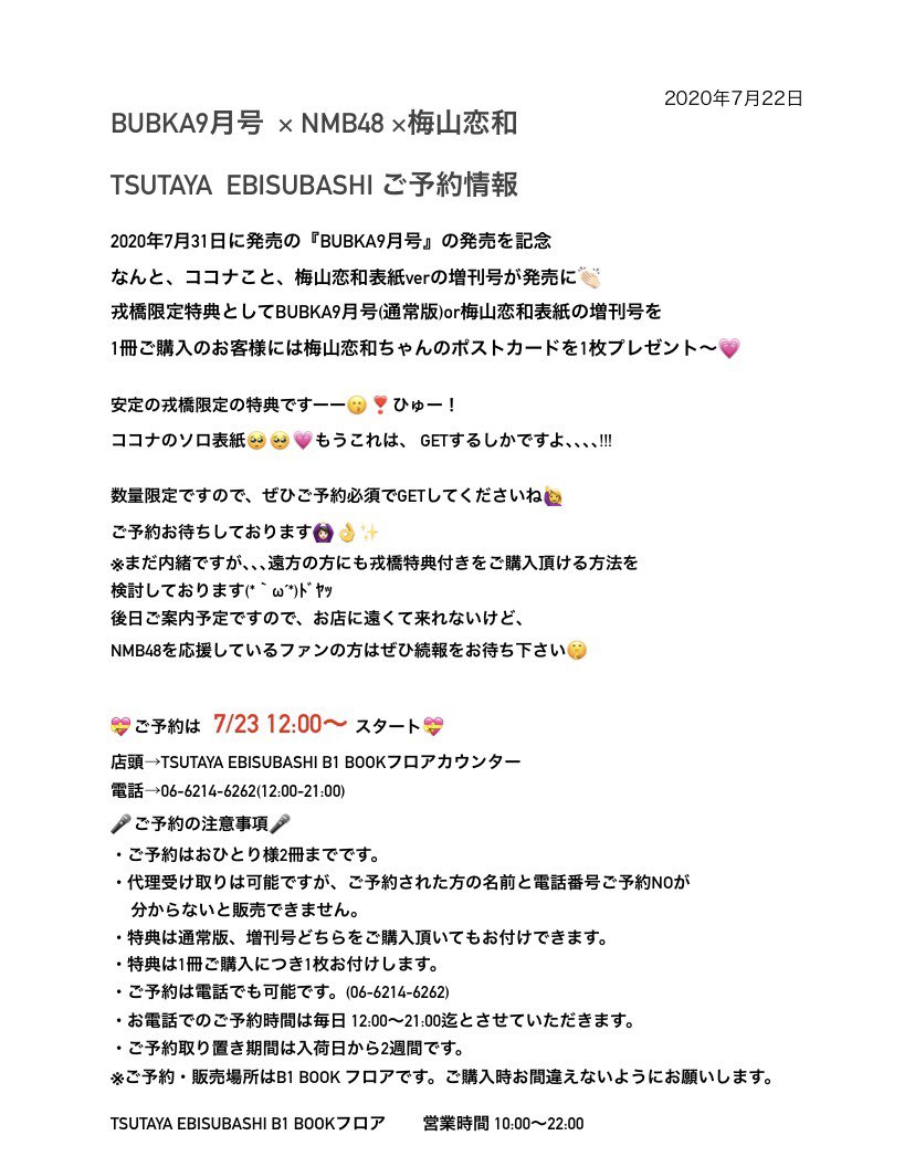 7月31日発売の #BUBKA 9月号から #NMB48 #梅山恋和 さんver.の表紙も公開します!