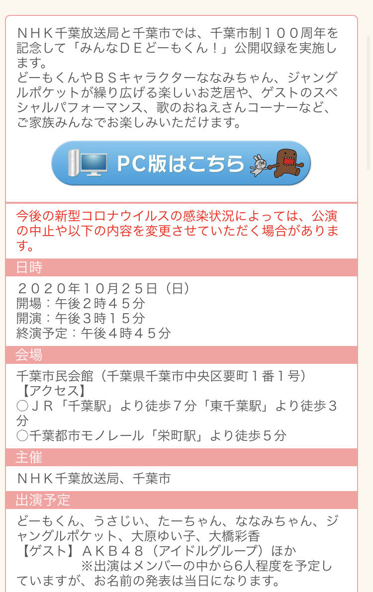 それに伴いNHK千葉放送局にて公開収録の観覧募集中です❣